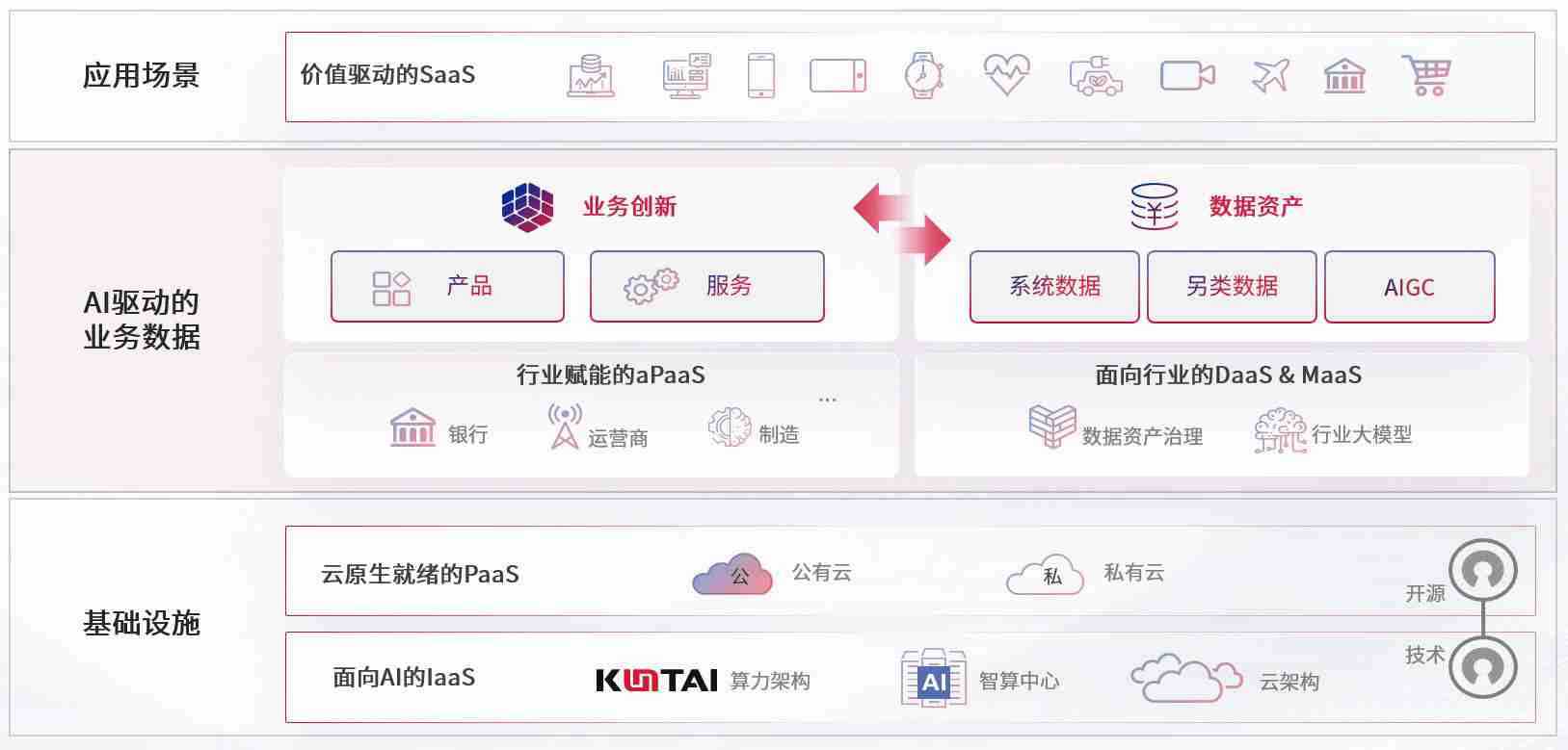 数字时代,,围绕企业数字化转型的关键要素,,尊龙时凯数码开创性的提出数云融合战略和技术体系框架,,着力在云原生、、、、数字原生、、AI原生和信创产业上架构产品和服务能力,,为处在不同数字化转型阶段的快消零售、、、汽车、、金融、、医疗、、政企、、教育、、运营商等行业客户提供泛在的敏捷IT能力和融合的数据驱动能力,,,构建跨界融合创新的数字业务场景和新业务模式,,助力企业级客户建立面向未来的核心能力和竞争优势,,,,全面推动社会的数字化、、、智能化转型升级。。。